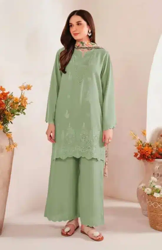 Green Dhanak 3PC Chikan Kari Embroidered
