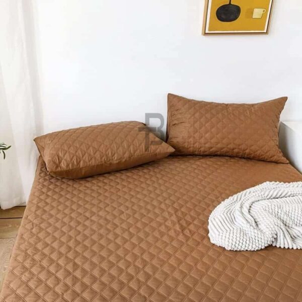 Soft Cotton Quilted 100% Waterproof Fitted Mattress Protector In Brown Color