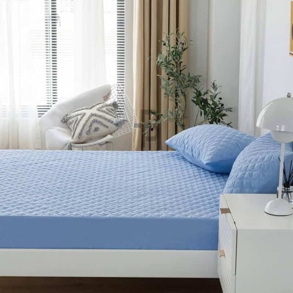 Soft Cotton Quilted 100% Waterproof Fitted Mattress Protector In Blue Color