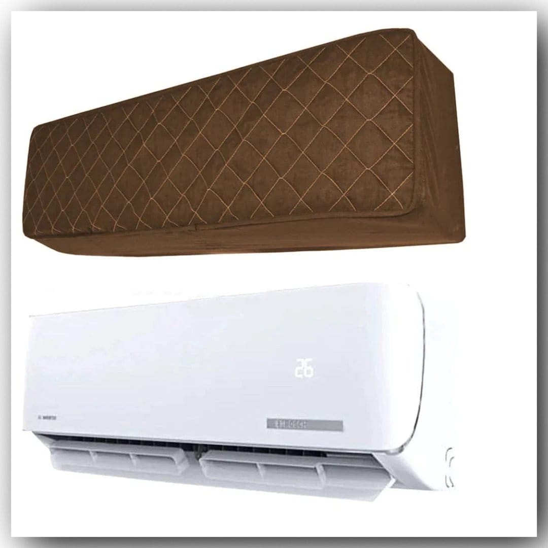 Stylish copper brown quilted AC cover by burujtextile made with premium cotton and waterproof parachute. Protects from dust, rain, and sunlight — washable, durable, and fits all inverter and non-inverter models across Pakistan.
