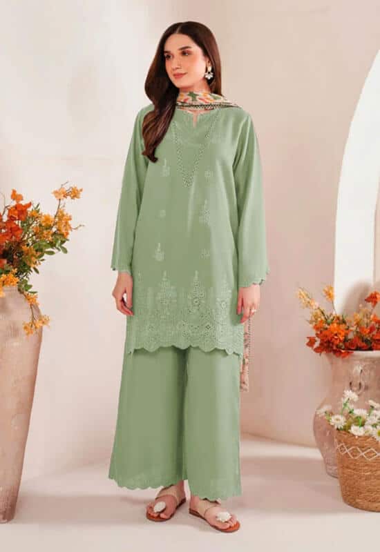Green Dhanak 3PC Chikan Kari Embroidered
